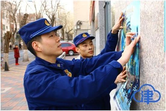 (张贴消防安全海报)