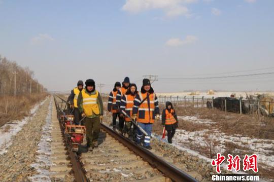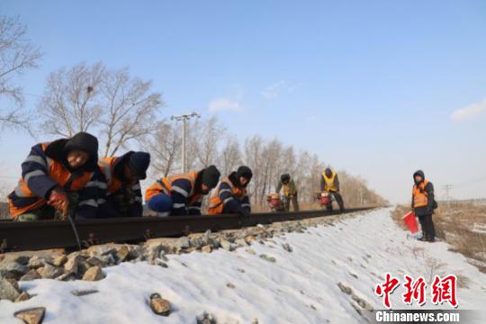 7日,农历正月初三,在中国北疆三江平原铁道线深处,一群养路人正在忙碌着,他们开始了春节期间的首次养护维修工作,他们时而起身、时而蹲下,与线路两侧的皑皑白雪,形成了一道靓丽的风景线。