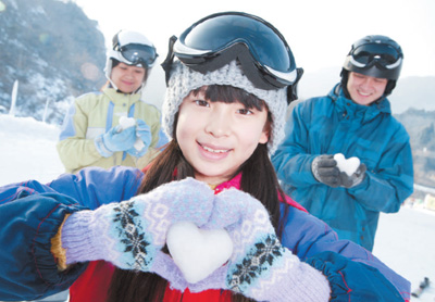 一家人在雪场。
