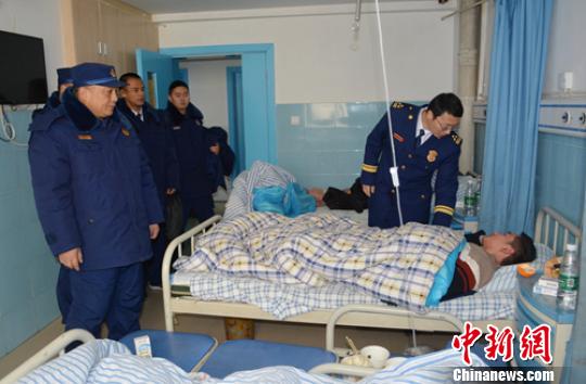 应急管理部消防救援局等在医院看望慰问受伤的消防员。 阿坝消防