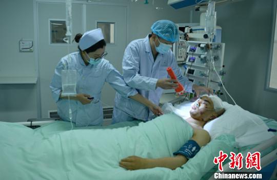 医院重症监护室医护人员正在对术后的消防员进行问诊。 刘忠俊 摄