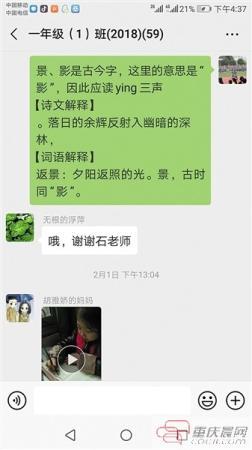 大年初四(2月8日),尽管是春节假期,开州区关面乡中心小学的语文教师石文平依然在忙碌,他通过手机视频教学,逐一检查、点评所任教的一年级1班孩子们的古诗词背诵情况。