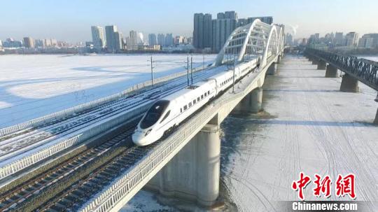图为动车组通过哈尔滨特大桥。(中国铁路哈尔滨局集团有限公司提供)