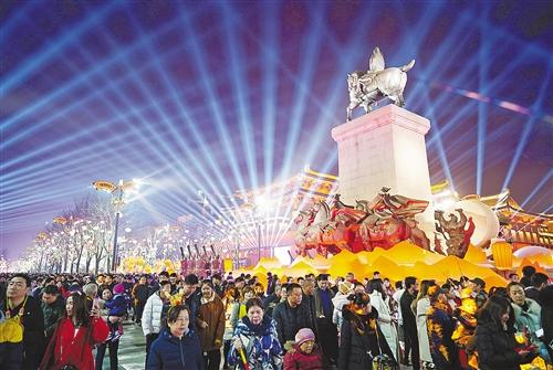 西安曲江新区大唐不夜城步行街游人如织(2月5日摄)。新华社记者 邵瑞摄