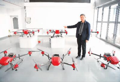 2月2日,工作人员在黑龙江省桦南县水稻分子育种研发中心介绍无人机飞防情况。新华社记者 王建威摄