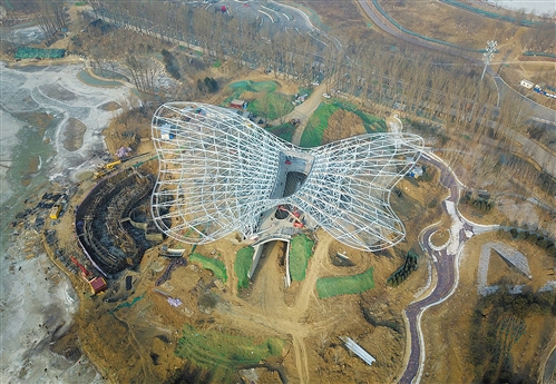 北京世园会演艺中心(1月11日无人机拍摄)。新华社记者 张晨霖摄