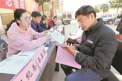 云南省陆良县纪委监委坚持把惩治“蝇贪”同扫黑除恶相结合,组织各级纪检监察干部深入基层一线,深挖细查群众身边的涉黑涉恶腐败和充当“保护伞”问题。图为日前,该县纪委监委干部在板桥镇开展现场接访活动。摄影/王勇(云南省陆良县纪委监委宣传部部长)