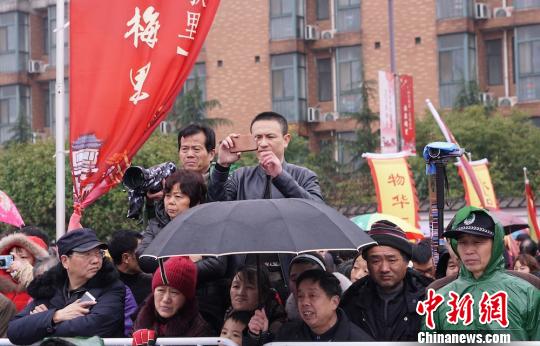 中新网无锡2月13日电 (记者 孙权)2月13日,正月初九。一年一度的“泰伯庙会”在吴文化发源地无锡市新吴区梅村街道举行。尽管当天空中飘着细雨,但热闹的民俗巡游、趣味十足的非遗嘉年华和众多送文化下乡惠民演出一起“扎堆”亮相,仍是吸引了无锡及周边城市的十余万游人齐聚此间,在正月里走亲访友“品”年味。