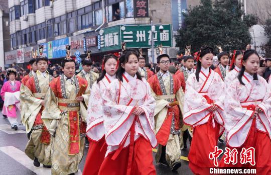 着古装出行的学生们一亮相,也成为人们眼中的风景线。 孙权 摄