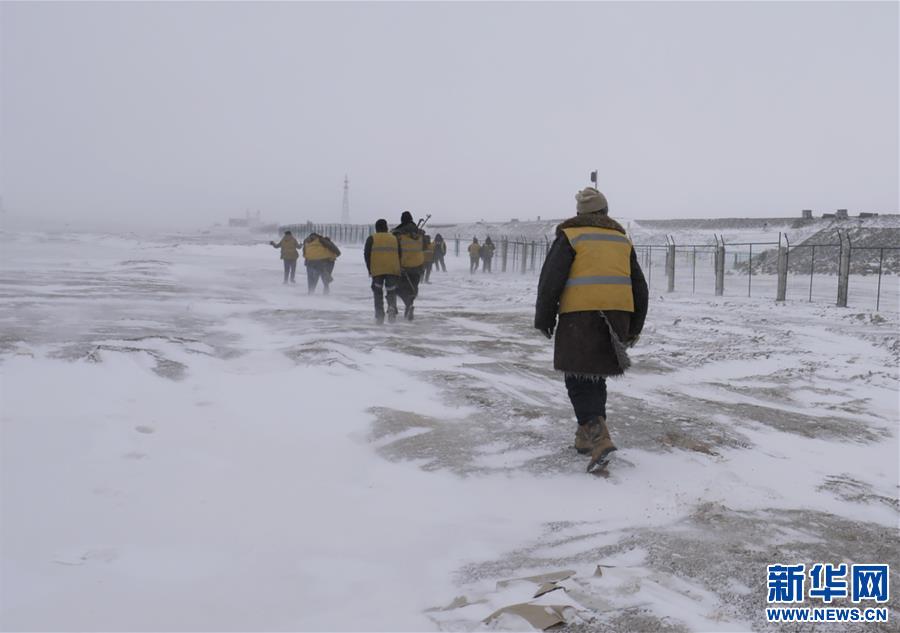 青藏铁路唐古拉线路工人在风雪中前行(1月29日摄)。新华社记者 旦增尼玛曲珠 摄