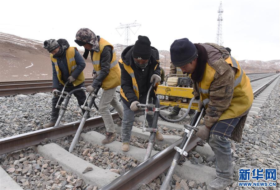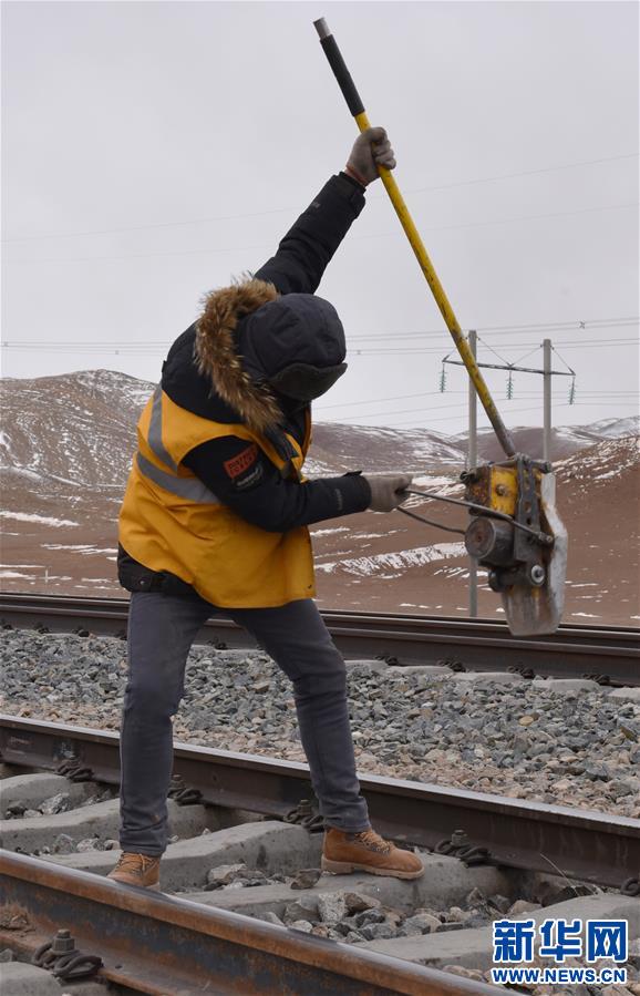 青藏铁路唐古拉线路工人在进行维护作业(1月28日摄)。新华社记者 周健伟 摄