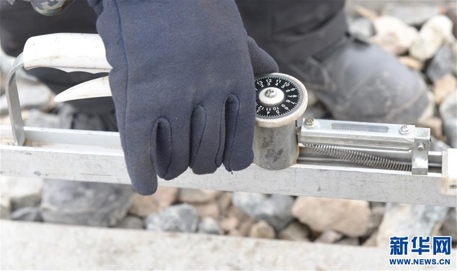 扎西旺堆用道尺检测轨道(1月28日摄)。新华社记者 周健伟 摄