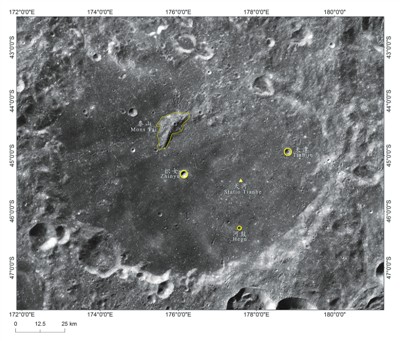 冯·卡门坑内的中央峰泰山则以我国五岳之首的泰山而命名,位于嫦娥四号着陆点西北方向约46公里处,其“海拔”高度为-4305米,相对冯·卡门坑面高度约为1565米。泰山是我国首次获得的“山,山脉”类月球地理实体名称的自主命名,这也是自1985年后33年的时间里国际天文学联合会再一次批准命名“山,山脉”这一类月球地理实体名称。(本报记者 冯华)