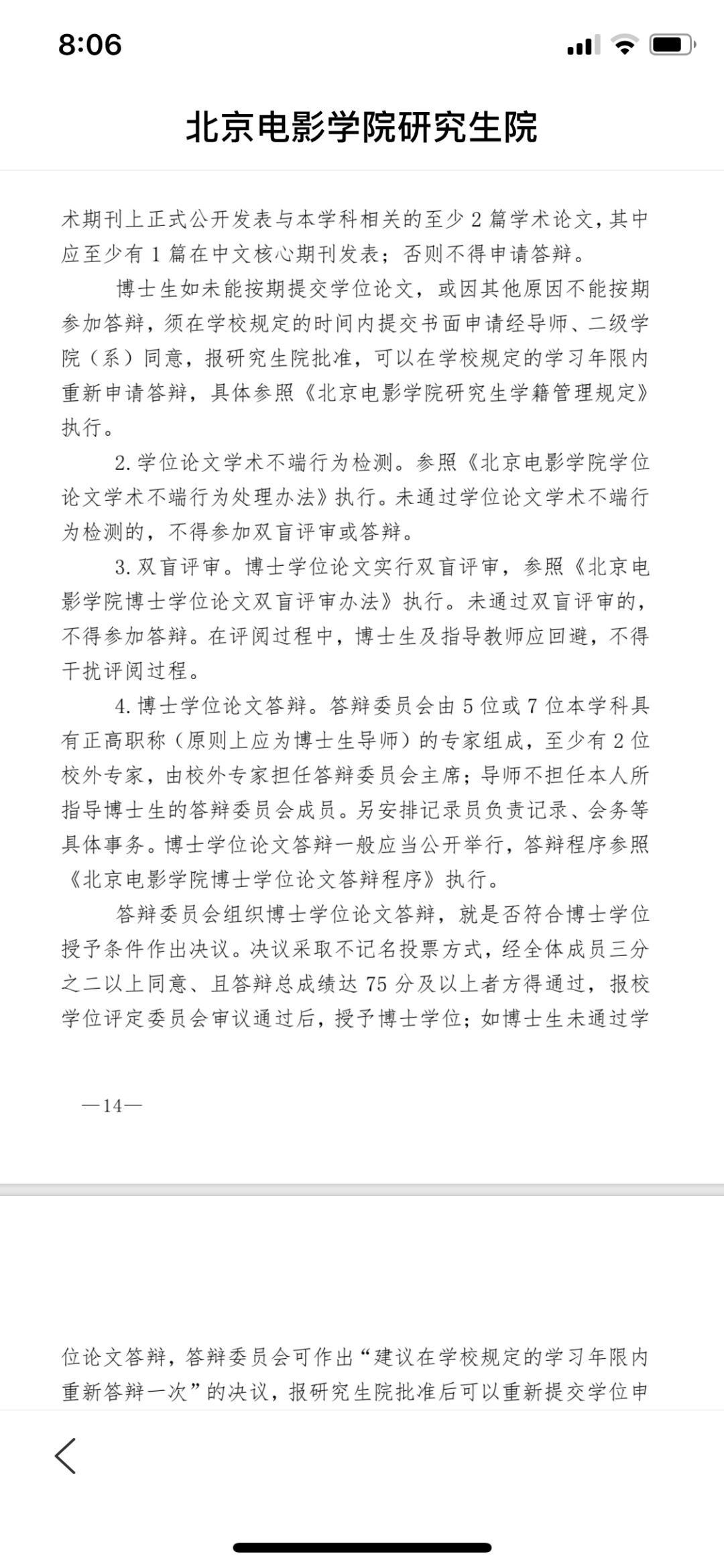 最后,学校要举行博士学位论文答辩会,既然是委员会,肯定不止一个专家。北京电影学院规定,答辩委员会由5位或7位本学科具 有正高职称(原则上应为博士生导师)的专家组成,至少有2位校外专家,由校外专家担任答辩委员会主席,导师不担任本人所指导博士生的答辩委员会成员。遗憾的是,网友能发现的问题,如此多的专家学者却视而不见。