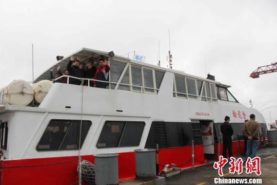 由中共福州市马尾区委常委、统战部长伍南腾率领的马尾经济文化交流合作中心团组,16日从马尾搭乘“金龙轮”赴马祖,参加第十七届“两马同春闹元宵”活动。 王彦 摄