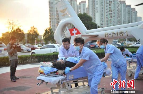 17:56,南方医科大学深圳医院的停机坪上空开始传来直升机的“轰轰声”。这架空客135双引擎救援直升机降落后,医务组迅速抬起担架,涌向直升机后舱,将病人分别安全送到骨科和神经外科病房,而这个过程仅仅用了不到3分钟的时间。原本需耗时3小时以上的地面转运,仅用了76分钟就已完成。