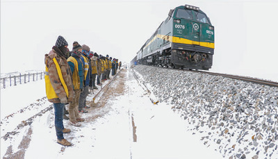 春运时节正值隆冬,平均海拔5000米的唐古拉山区风吹石头跑、雪打如刀割,氧气含量不到海平面的40%。为确保火车安全通行,上百名线路工、劳务工坚守在这里,顶狂风战暴雪,排除冻土、大风、塌方等危害铁路安全的险情,用血肉之躯铸成一根根看不见的“轨枕”,托起青藏铁路安全运行的奇迹。