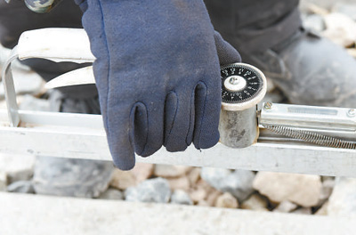 用道尺检测轨道。