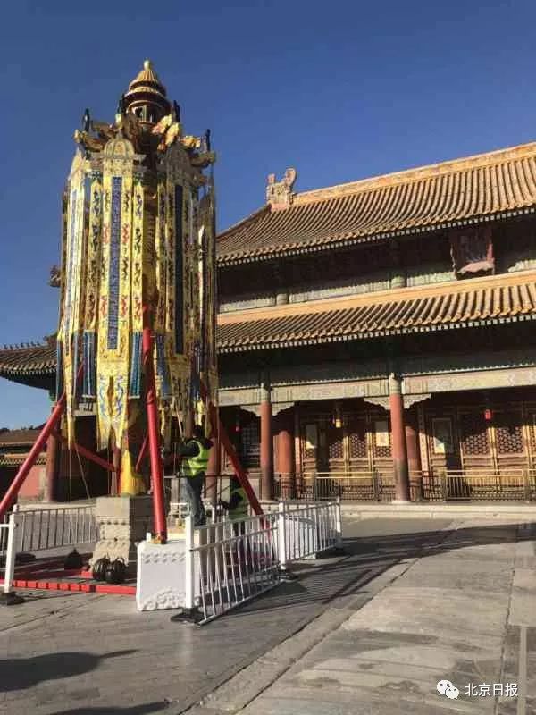 复原过程中,也有一些变通。比如万寿灯的4根戗木,原长二丈六尺二寸,即8.348米,故宫进行了一定缩短,调小了支立角度,为观众留下更多参观空间。