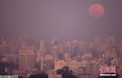 资料图:巴西圣保罗,天空中悬挂着巨大的“超级月亮”。