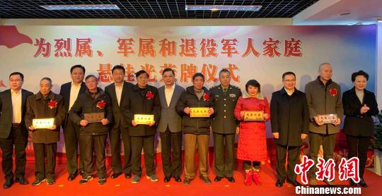 上海启动为烈属、军属和退役军人等家庭悬挂光荣牌。 供图 摄