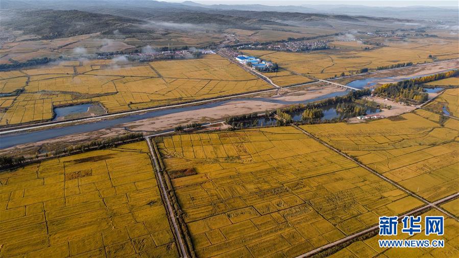 这是吉林省和龙市光东村秋日稻田景色(2017年9月22日无人机拍摄)。 新华社记者 许畅 摄