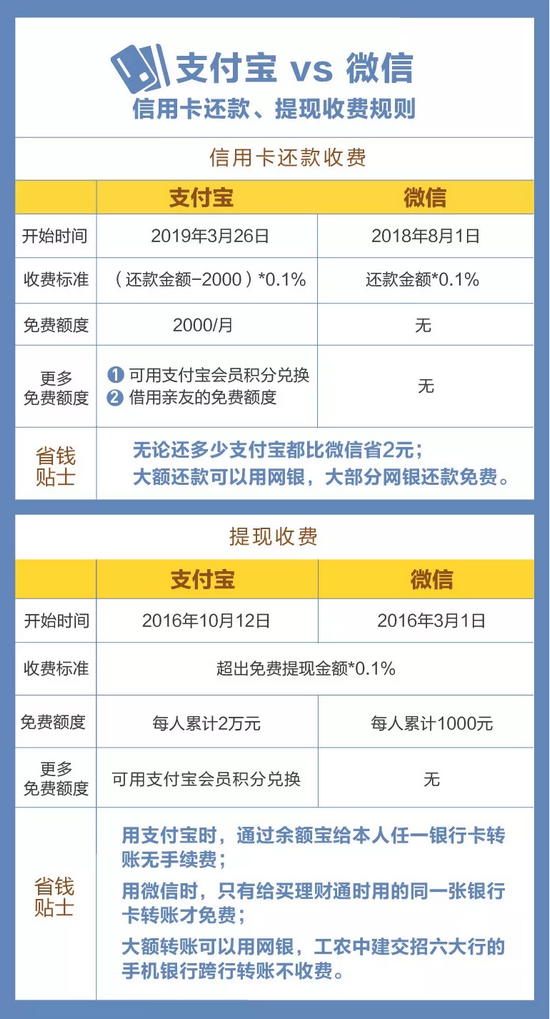 2016年,针对提现服务,微信、支付宝先后宣布各自收费规则。这次,信用卡还款收费规则也是相继出台,再次引发关于互联网服务是否已经进入收费时代的讨论。