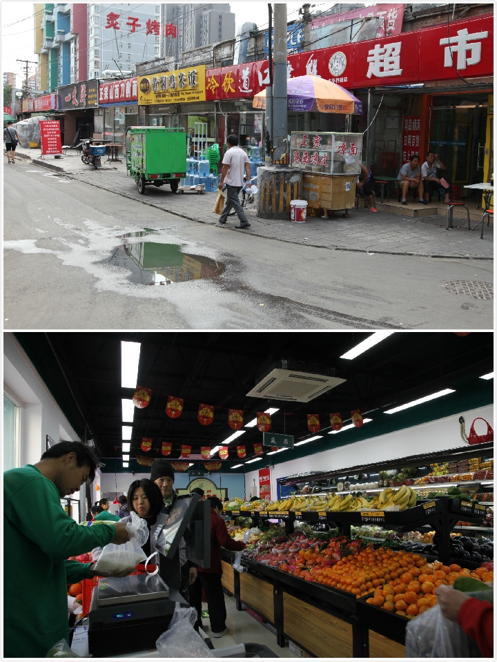 拼版照片上图为北京市丰台区太平桥街道太平桥200号院,在“吹哨报到”机制实施前,出租大院存在多年(2016年8月22日摄);下图为太平桥街道太平桥200号院,在“吹哨报到”机制实施后,原来的出租大院经过整治变身社区便民店(2018年11月5日摄)。新华社发