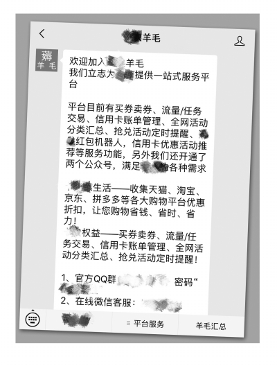 “薅羊毛”的同时,杨晓军也在默默观察分析,“好多活动都是看别人分享才知道的,‘线报’涉及不同平台,既有信用卡组团抽奖的,也有电商拼团分豆的,在群里‘出镜率’高的,往往性价比也就高一些,值得跟着一试。”