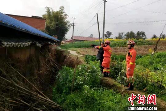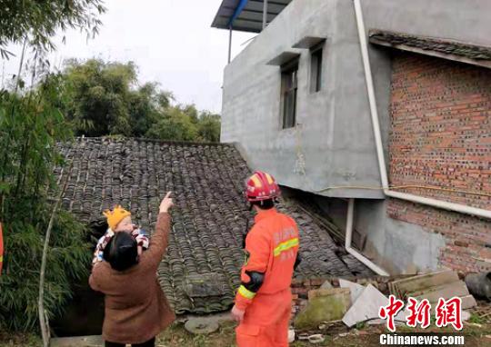 消防员向村民了解房屋受损情况。 钟欣 摄