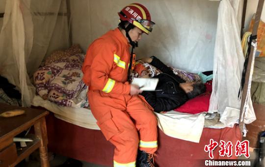消防员正在村民家排查和了解受灾情况。 钟欣 摄