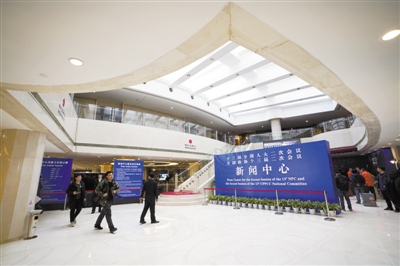 2月27日,北京梅地亚中心的全国两会新闻中心正式启用。在全国两会期间,新闻中心将举行多场记者会,并将为记者提供采访工作相关服务。