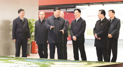 一月十六日至十八日,中共中央总书记、国家主席、中央军委主席习近平在京津冀考察,主持召开京津冀协同发展座谈会并发表重要讲话。图为一月十六日上午,习近平在河北雄安新区规划展示中心,仔细听取新区总体规划、政策体系及建设情况介绍。