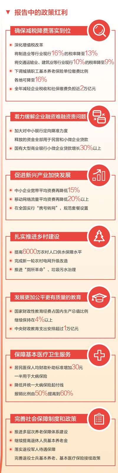 政府工作报告还提出了明显降低企业社保缴费负担的具体措施。“社保费既影响企业实际负担,又关系职工切身利益,降低单位缴费比例等举措回应了社会的期盼。”张兴海代表说,减税降费关键是要切实让市场主体特别是小微企业有明显感受,政府工作报告提出减税降费举措,将会显著增强实体经济企业的获得感。