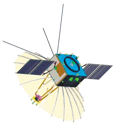 成功实施嫦娥四号任务是中国重大科技创新之一,赢得政府工作报告点赞。图为嫦娥四号在月背探测并通过鹊桥中继星与地面进行数据传输。
