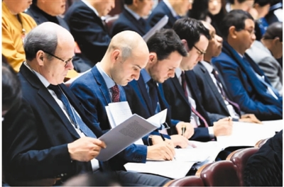 3月5日,第十三届全国人民代表大会第二次会议在北京人民大会堂开幕。图为外国驻华使节旁听大会。
