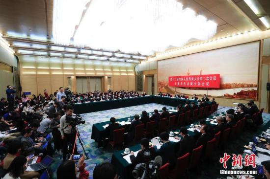 3月6日,十三届全国人大二次会议上海代表团在北京人民大会堂上海厅举行全体会议,审议政府工作报告并对中外媒体开放。中新社记者 杜洋 摄