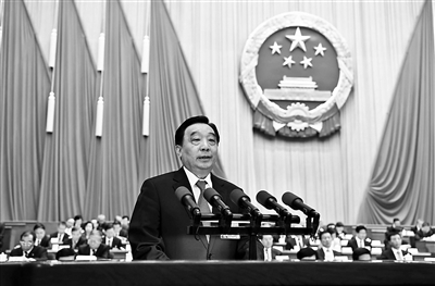 昨天,王晨作关于外商投资法草案的说明供图/新华社