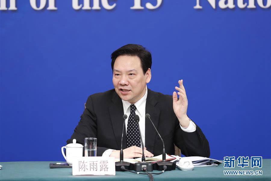 3月10日,十三届全国人大二次会议新闻中心举行记者会,邀请中国人民银行行长易纲,副行长陈雨露,副行长、国家外汇管理局局长潘功胜,副行长范一飞就“金融改革与发展”相关问题回答中外记者提问。这是陈雨露在回答记者提问。新华社记者 沈伯韩 摄
