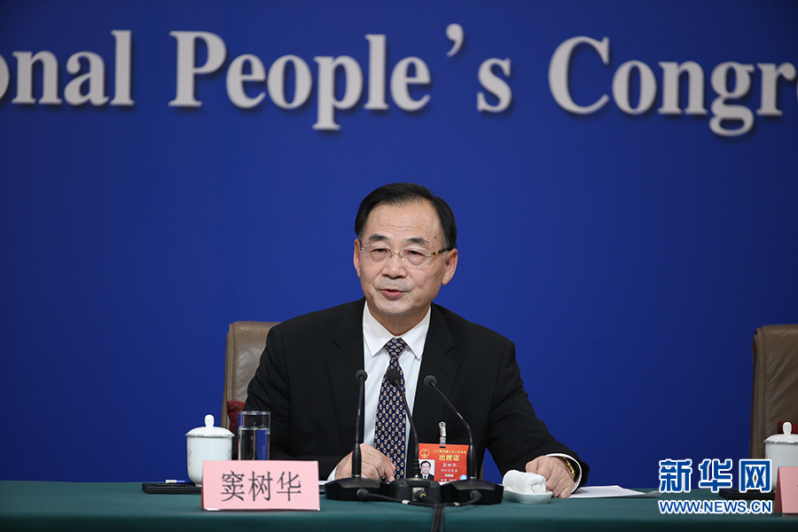 十三届全国人大二次会议新闻中心于3月10日(星期日)15时在梅地亚中心新闻发布厅举行记者会,邀请全国人大监察和司法委员会副主任委员徐显明、全国人大财政经济委员会副主任委员尹中卿、全国人大教育科学文化卫生委员会副主任委员吴恒、全国人大环境与资源保护委员会副主任委员窦树华和全国人大常委会预算工作委员会副主任朱明春就“人大监督工作”相关问题回答中外记者提问。图为全国人大环境与资源保护委员会副主任委员窦树华。新华网/中国政府网 刘厦 摄