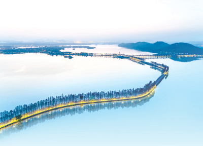 武汉东湖,是我国水域面积较大的城中湖之一;东湖绿道,已建成国家5A级旅游景区环湖绿道。绿道开放两年来,接待游客总量近4000万人次,成为游客旅游休闲和当地市民户外活动的首选地之一、武汉生态文明建设的一张新名片。