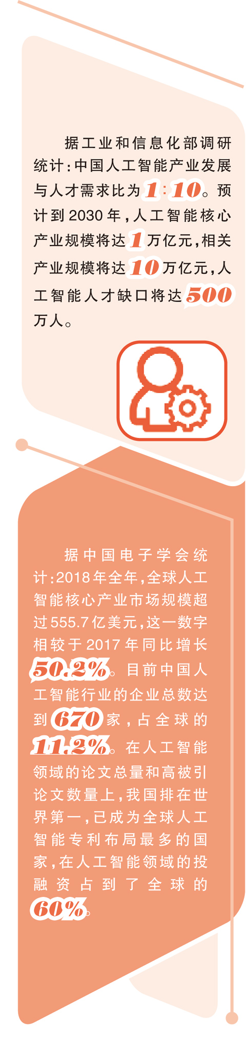 刘庆峰代表认为,落实人工智能国家战略,必须人才先行,打造人工智能时代的“人才矩阵”,形成基础能力、源头创新、产业研发、应用开发、实用技能等多类型人才并重并用的局面。这可以通过强化基础人才建设、引进源头创新人才、培育产业研发人才、扶植行业应用人才、锻造技术工人等举措来实现。按照他的设想,我国人工智能研究的下一步突破,可以从三个方面推进,即“加大数学基础原理的研究,创新数学统计建模方法;加强脑科学基础研究,脑智同飞带动人工智能技术发展;加快人工智能落地应用,以‘人机耦合’模式反哺人工智能基础研究”。