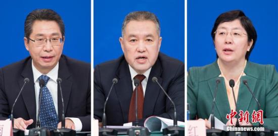 图为张茅(中)回答记者提问。中新社记者 侯宇 摄