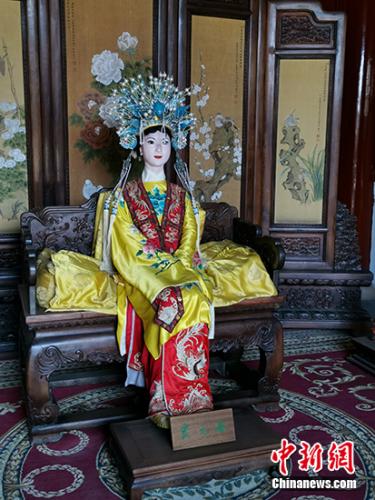 北京大观园中,贾元春塑像依旧端坐。中新网记者 宋宇晟 摄