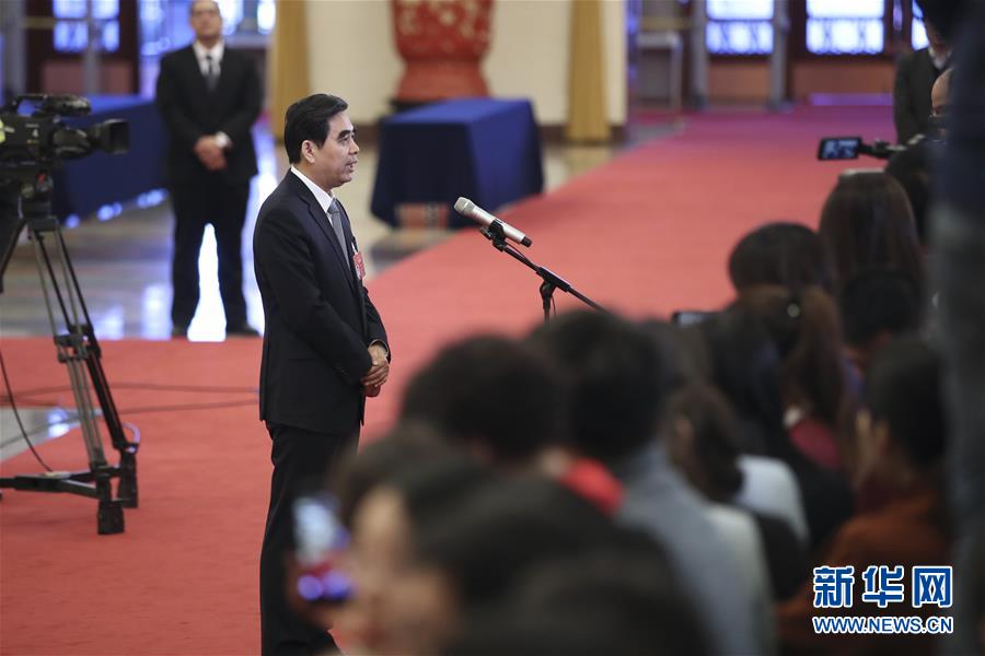 3月12日,十三届全国人大二次会议在北京人民大会堂举行第三次全体会议。这是人力资源和社会保障部部长张纪南在“部长通道”接受采访。新华社记者 金立旺 摄 大众网海报新闻记者: