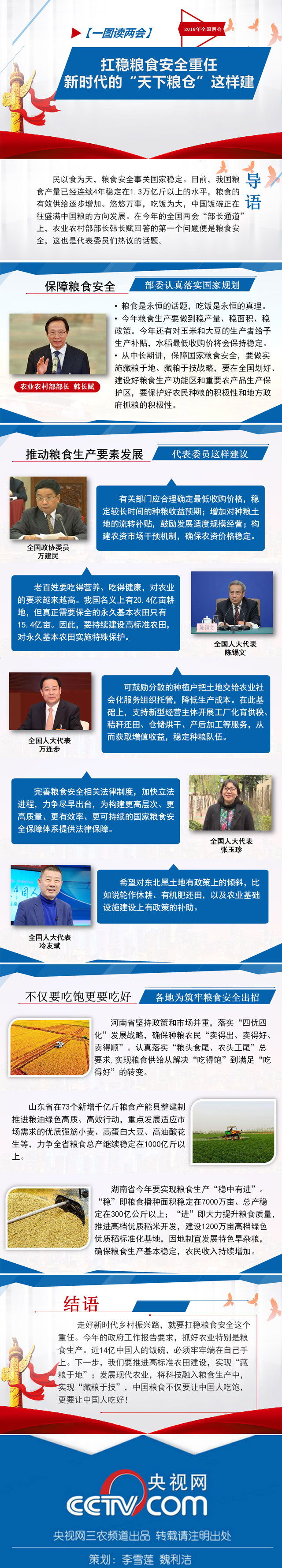 央视网消息:民以食为天,粮食安全事关国家稳定。目前,我国粮食产量已经连续4年稳定在1.3万亿斤以上的水平,粮食的有效供给逐步增加。悠悠万事,吃饭为大,中国饭碗正在往盛满中国粮的方向发展。在今年的全国两会“部长通道”上,农业农村部部长韩长赋回答的第一个问题便是粮食安全,这也是代表委员们热议的话题。