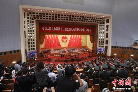 3月15日,第十三届全国人民代表大会第二次会议在北京人民大会堂举行闭幕会。中新社记者 盛佳鹏 摄