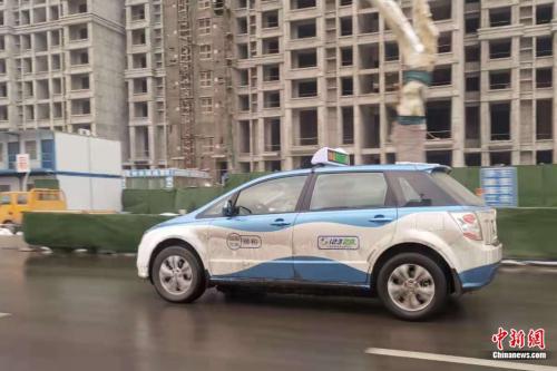 河南安阳,路上行驶的新能源出租车。张旭 摄