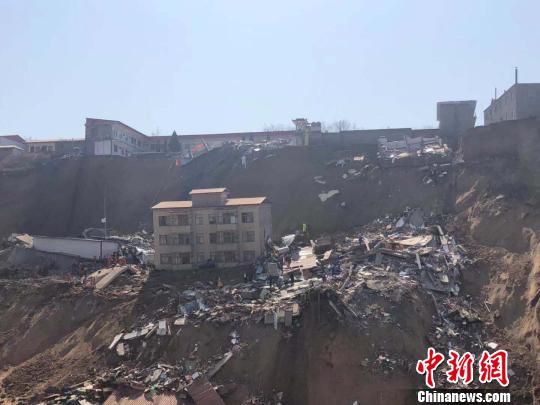 中新社记者抵达现场看见,此次灾害中垮塌的房屋位于山顶,旁边即是一处深沟。塑钢屋顶、房屋废墟等散落在一片黄土坡上,有一座3层楼房向侧下方平移数十米,外观还较完好。 李庭耀 摄