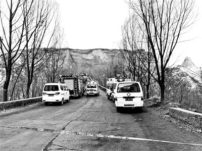 多辆救援车辆赶往垮塌现场 摄影/本报记者 付垚